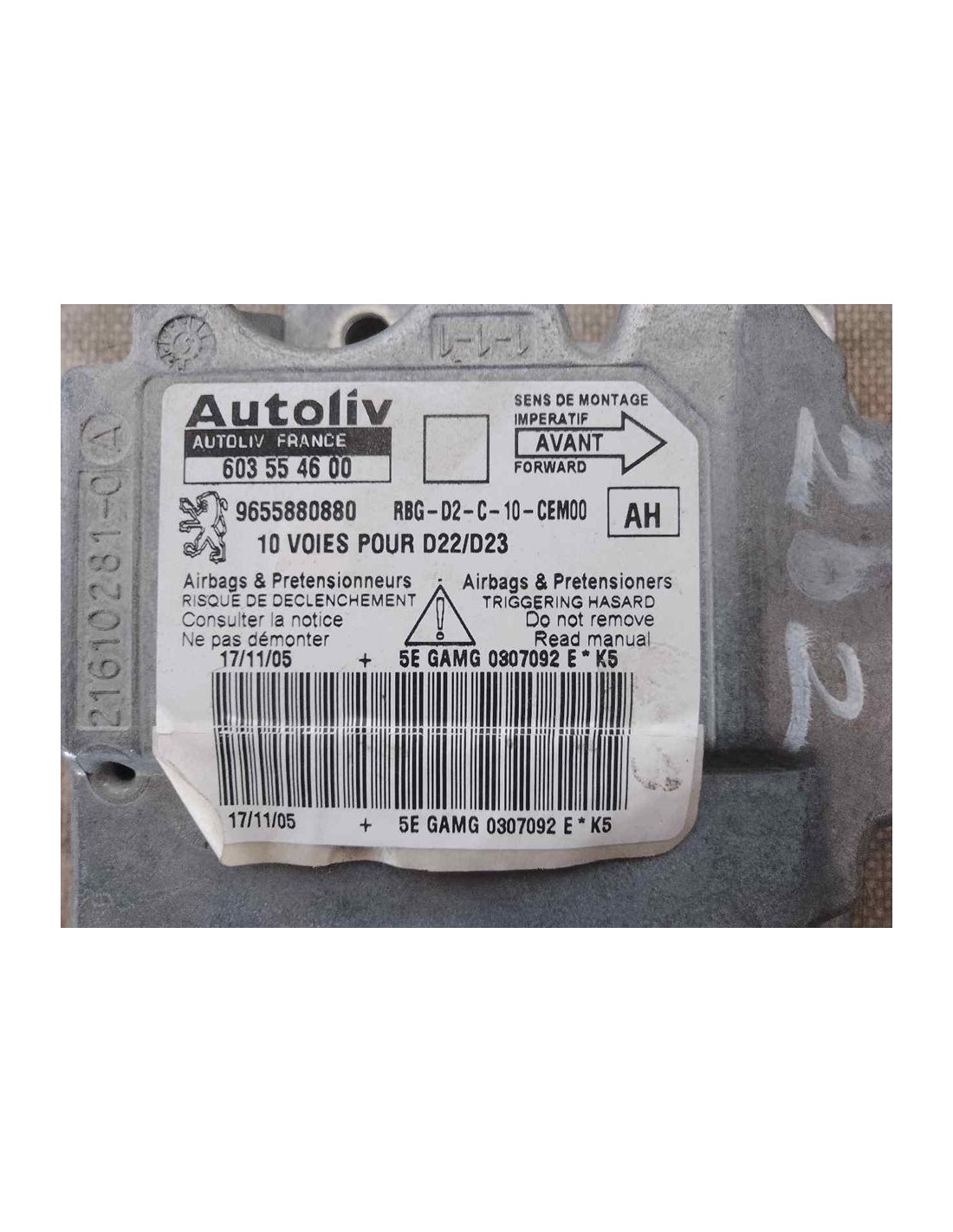 CENTRALITA AIRBAG PEUGEOT 407PEUGEOT 407(2004 2007)9HZ9HZ